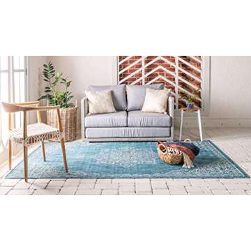 Unique Loom Outdoor Traditional Collection Area Rug - Antique (8' x 11' 4" Rectangle, Teal/ Gray)
