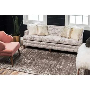 Unique Loom Sofia Collection Area Rug - Casino (7' 1" x 10' Rectangle, Brown/ Ivory)