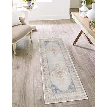 Unique Loom Whitney Collection Area Rug - Geneva (2' x 8' Runner, Sky blue/ Ivory)