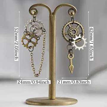 Show more Elevate your accessory game with our stunning punk steampunk gear dangle earrings! Crafted with a unique style that marries punk aesthetics with steampunk flair, these earrings promise to be a standout addition to any jewelry collection. Lightweight and comfortable, they are designed for all-day wear, making them the perfect choice whether you’re dressing up for a formal event or adding flair to your casual outfits. The original design ensures that you can wear them with both elegance and ease, showcasing your personal style effortlessly.