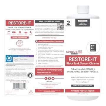 Not only does this cleaner restore sensor accuracy, it also offers an environmentally friendly cleaning option that brings peace of mind. Say goodbye to the guesswork, and hello to straightforward, reliable readings once more! Take the plunge with Restore-It’s Black Tank Sensor Cleaner – because your RV experience deserves to be seamless.