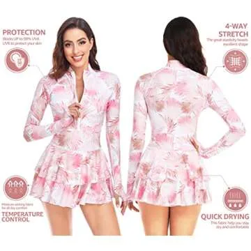 UNIQUEBELLA Rash Guard for Women, 1 Piece Modest Swimsuits for Women - Long Sleeve Swimsuits UV UPF 50+ Pink
