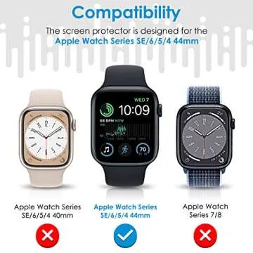 Show more Introducing the **UniqueMe 6 Pack for Apple Watch Screen Protector**, meticulously designed to protect your Apple Watch 44mm Series SE (2023/2022/2020), Series 6, and Series 5. This premium screen protector features an upgrade Flexible Film that combines flexibility with military-grade durability, ensuring your device is shielded from scratches and daily wear while maintaining crystal-clear visibility. Its advanced no-bubble technology guarantees a hassle-free installation, making it an ideal choice for anyone looking to enhance their watch's protection without compromising functionality.