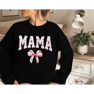 UNIQUEONE Mama Sweatshirt Coquette Sweater Women Bow Sweatshirt Pink Ribbon Sweatshirts Cute Crewneck Long Sleeve Top