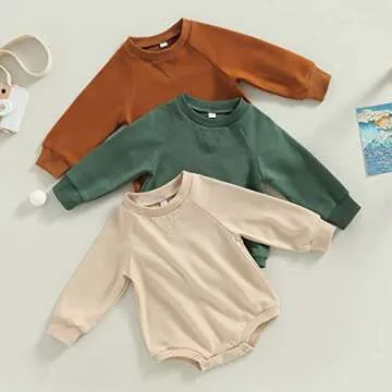 Show more Welcome the cozy season with our Unisex Baby Girl Boy Fall Bubble Romper! This charming oversized crewneck sweatshirt romper is crafted from soft, breathable fabric that ensures your little one feels comfortable and snug throughout those chilly days. Available in a delightful brown hue, it’s designed to complement any wardrobe while offering a unique and stylish silhouette. The long sleeves paired with a cute bubble design create an adorable look perfect for fall adventures, family gatherings, or casual outings. With thoughtful attention to detail, this romper blends functionality with fashion, making it an essential addition to your baby’s closet.