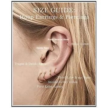 Show more Introducing the Unisex Dainty Tiny 18k Real Gold Plating Cartilage Hoop Earrings, the perfect blend of elegance and versatility for your unique style! Crafted with precision using high-quality 316L surgical steel, these earrings are not only durable but also hypoallergenic, making them a safe choice for sensitive skin. Adorned with a stunning 18k gold plating, each pair features a lightweight hoop design that comes in three different sizes: 8mm (0.31"), 10mm (0.40"), and 12mm (0.47").