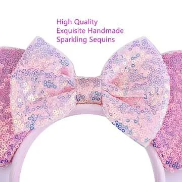 Show moreStep into a world of enchantment with our Unisex Mouse Ears Headbands featuring dazzling bows, festive snowflakes, and shimmering sequins! These beautifully crafted accessories are not only a must-have for any Disney enthusiast but also a vibrant addition to your festive wardrobe. Each headband is painstakingly designed with a focus on quality, ensuring that the sequins are intricately threaded for durability and lasting sparkle. Measuring an impressive 4 inches in diameter, they offer a perfect balance of style and comfort thanks to the soft and thick padding that cushions your head for extended wear.