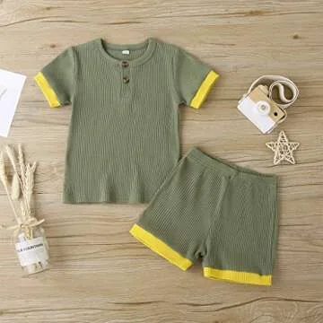 Show moreIntroduce your little ones to the joy of summer with our Unisex Toddler Baby Boy Girl Summer Clothes! Designed with both style and comfort in mind, this ribbed two-piece outfit set features a short sleeve T-shirt and matching shorts, perfect for the warm weather. Made from a high-quality cotton blend, it offers breathable and sweat-absorbent properties that keep your child feeling fresh and comfortable throughout the day. The soft hand feeling ensures that your child can play freely without any irritation, while the heat-resistant fabric safeguards against overheating during those sunny outings. This outfit is not only machine washable but also easy to clean by hand, making it a parent’s best friend.