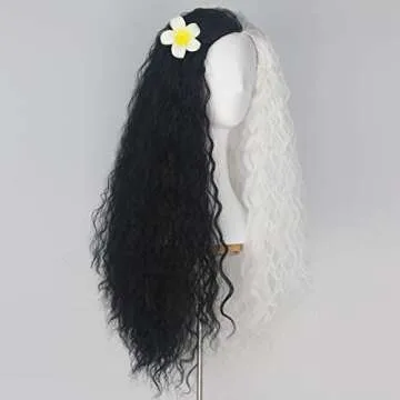Show moreUnleash your creativity and transform into a stunning character with our Unisex Women 80cm Long Curly Dark Brown Hair Halloween Cosplay Costume Wig. This exquisite wig boasts a breathtaking blend of dark brown and half white tones, making it perfect for cosplay, Halloween parties, or any other festive occasions. With its impressive length of approximately 80cm (31.5 inches) and lightweight design (weighs only 280g±5g), this wig guarantees comfort and style throughout your dress-up adventures. Crafted from high-quality synthetic high-temperature fiber, it is designed to hold its shape while providing a natural look and feel, ensuring you'll stand out in any crowd.