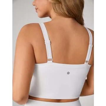 UNISSU Hugcurve Adjustable Longline Sports Bra Square Neck Workout Tank Crop Tops for Women with Built in Bra Padded Camisole White Small