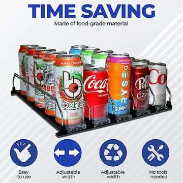 Universal Adjustable Can Dispenser: High Capacity Fridge Beverage Storage - Easy-Glide Soda and Beer Organizer for All Refreshments - Space-Saving, Versatile Design (15"D, 5 Rows)