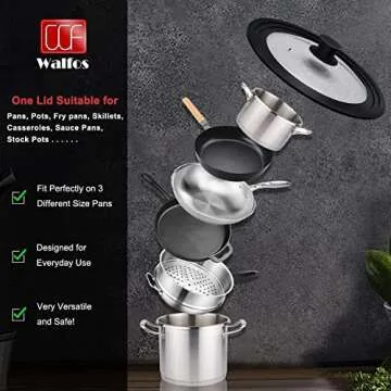 Universal Lid for Pots, Pans and Skillets - Tempered Glass with Heat Resistant Silicone Rim, Fits 10", 11" and 12" Diameter Cookware, Round