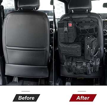 Show moreIntroducing the **Universal Tactical Vehicle Seat Back Organizer**, your ultimate companion for organized travel and efficient storage. This innovative organizer fits seamlessly behind most vehicle seats, transforming wasted space into a practically designed storage hub. Equipped with **five detachable MOLLE pouches**, including a special medical pouch and a dedicated water bottle pouch, this product is perfect for your everyday journeys or outdoor adventures. Its multiple pockets come in different sizes, allowing you to customize your storage solutions. Ranging from small admin panels to large utility bags, everything is readily accessible, ensuring a clutter-free ride.
