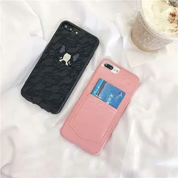 UnnFiko Leather Wallet Phone Case with Credit Card Holders, Lace Dog Pocket Cover with Card Slots for iPhone 7 Plus/iPhone 8 Plus (Pink, iPhone 7 Plus / 8 Plus)