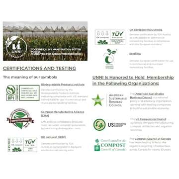 Unlike many standard plastic liners, the UNNI compostable bags prioritize environmental sustainability without sacrificing effectiveness. Our bags are not only sturdier, being 0.75 mil thick, but they are also certified by multiple authoritative organizations, granting them a significant edge over competitors. Many alternatives cannot boast the same level of certification, which means they may not break down effectively in composting systems, making UNNI a smarter choice for environmentally-aware consumers.