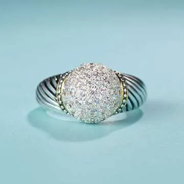 UNY Ring Twisted Cable Wire Designer Inspired Fashion Brand David Vintage Ball Shape Antique Women Jewelry Gift (White, 8)