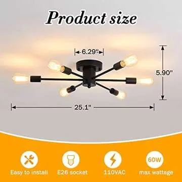 This light accommodates 6 x E26 lamp bases, providing flexibility with various bulb types, including LED, Edison, incandescent, CFL, and halogen. Please note that bulbs are not included, and for those who desire ambiance, you have the option to purchase compatible dimmer switches and dimmer bulbs to create the perfect mood lighting.
