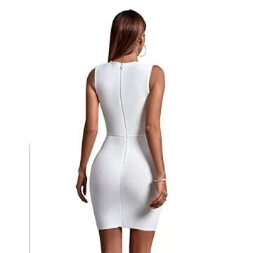 UONBOX Women's Bandage V Neck Bodycon Sleeveless Split Mini Party Club Dress White S