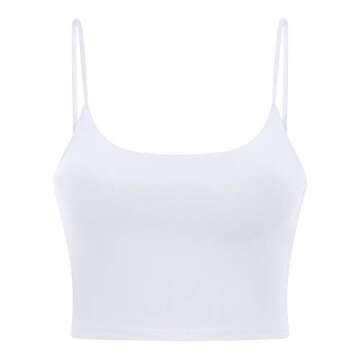 UOTJCNR Women's Longline Yoga Tank Top Padded Sports Bra Workout Fitness Running Camisole Crop Top White