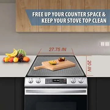 Show moreIntroducing the Versatile Uovviney Silicone Stove Top Cover, a must-have addition to your kitchen that combines style and functionality seamlessly! Designed to measure 27.75 x 20 inches, this exceptional cover provides a perfect fit for your glass top stove, efficiently safeguarding it from scratches, spills, and daily wear while expanding your kitchen workspace. Made of premium-quality silicone, it not only protects but also transforms your cooking area into a more organized and efficient zone for meal prep.