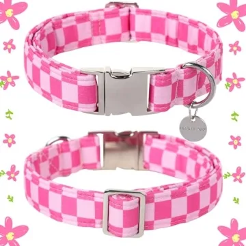 UP URARA PUP Adjustable Summer Dog Collar - Cute Pink Plaid Design with Metal Buckle for Any Dog