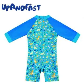 upandfast Baby Boy Swimsuit with Snap Bottom UPF 50+ Sun Protection Toddler One Piece Swimwear (Blue Dinosaur, 3 Months)