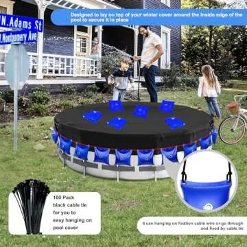 Show more Introducing the ultimate solution for your pool maintenance needs – our Pool Cover Water Weight Bags! Designed to provide a secure hold for your pool cover, these bags are an essential accessory for every pool owner. The package includes 16 durable water bags and 100 strong hanging cable ties, ensuring a hassle-free installation without the need for extra connecting accessories. You can easily fill the bags with water or sand, allowing for versatile usage whether it's hanging or laying flat on your pool cover.