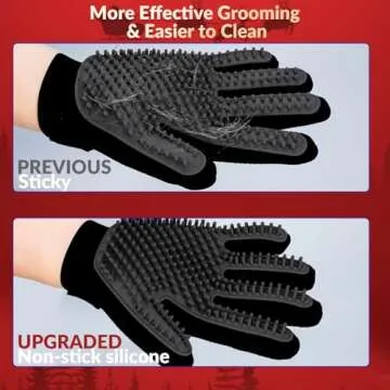 Show more Discover the joy of grooming with the innovative DELOMO Pet Grooming Gloves. Designed with an upgraded version featuring 255 soft silicone grooming tips, these gloves mimic the gentle touch of your hand, providing a satisfyingly relaxing massage for your furry companions. Whether your pet is a cat, dog, or even a horse, these flexible gloves allow you to brush away dirt and loose hair effortlessly. The unique hair remover feature ensures that shedding hair sticks to the glove, making cleanup simpler than ever; just peel off and toss away!