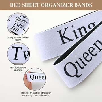 Show moreIntroducing the Upgraded Bed Sheet Organizer Bands – your ultimate solution to a clutter-free linen closet! Designed specifically to streamline your bedding storage, these 8-piece elastic bands are not just any storage solutions; they are made from high-quality materials that ensure durability and strength. Unlike flimsy alternatives, ZUMRUKES has crafted these bands to be long-lasting and stretchy, promising to retain their elasticity and shape for years to come. They're thicker, tougher, and built to handle everyday use without sagging or becoming ineffective, so your linens remain in pristine condition.