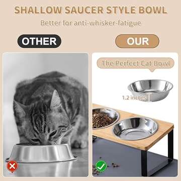 When comparing the Upgraded Elevated Cat Bowls to competitors in the market, it’s clear why it stands out. Many brands overlook the issue of whisker fatigue and fail to offer an ergonomic solution like the 15° tilted design, which can significantly impact your pet's feeding experience. Additionally, while some competing products use inferior materials, our stainless steel bowls are both durable and easy to clean, making them a smart investment for pet owners.