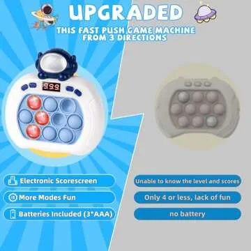 When compared with other fidget toys on the market, the Upgraded Quick Push Game Pop Bubble Up Toys stands out due to its incorporation of LED technology and multiple engaging modes. While many simpler pop toys focus solely on the tactile popping sensation, this innovative toy enhances the experience with vibrant visuals and interactive gameplay. Competitors may offer a singular focus on sensory stimulation, but our toy combines that with educational benefits, ensuring that children not only have fun but also learn essential skills as they play, making it a superior choice for parents.