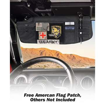 On top of the practicality and eco-friendliness, our product comes with bonus patches, including a free American flag patch, allowing for personal expression. Join countless satisfied drivers who have discovered the ease and organization this visor cover provides, making your daily commute not just convenient, but enjoyable.