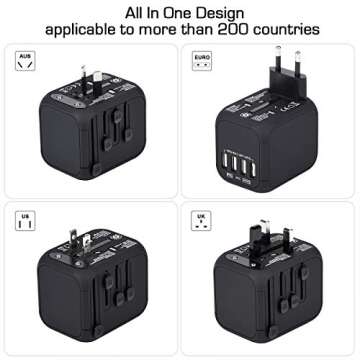 Upgraded Universal Travel Adapter with 4 USB Ports for Global Use