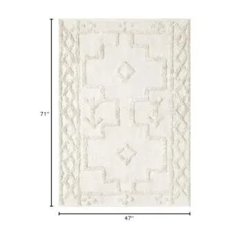 Uphome Boho Washable Rug 4' x 6', Beige Cotton Farmhouse Living Room Rugs, Hand Woven Tribal Bohemian Bedroom Rug, Western Geometric Tufted Neutral Floor Carpet for Nursery Entryway Kitchen