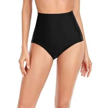 Upopby Women's High Waisted Swimsuit Bikini Bottoms Tummy Control Tankini Bottoms Swim Shorts Black XL