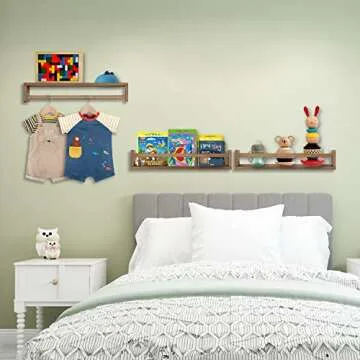 UPPZ Nursery Floating Shelves for Kids Room, Set of 3 Wall Book Shelves for Kitchen Living Room, Book Shelf Wall Mounted for Baby Kids Bedoom Bathroom (Light Walnut, 24inch Set 3)