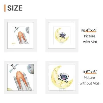 upsimples 6x6 Picture Frame Set of 3, Made of High Definition Glass for 4x4 with Mat or 6 x 6 Without, White, Wall and Tabletop Display Photo Frames