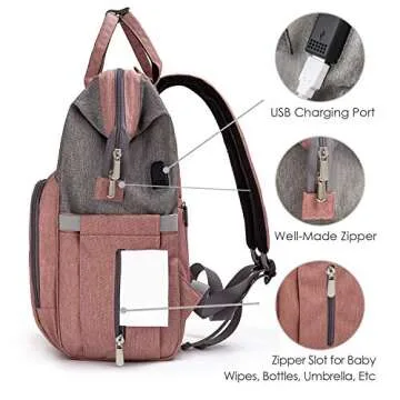 upsimples Diaper Bag Backpack Nappy Bag Baby Bags for Mom and Dad Maternity Diaper Bag with USB Charging Port Stroller Straps Thermal Pockets,Water Resistant, Pink Grey