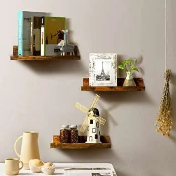 Upsimples Home Floating Shelves for Wall Decor Storage, Wall Shelves Set of 5, Wall Mounted Wood Shelves for Bedroom, Living Room, Bathroom, Kitchen, Small Picture Ledge Shelves, Brown