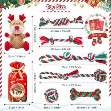 UPSKY 7 Pack Christmas Dog Toys, Dog Rope Toys with Squeaky Plush Toys Set, Interactive Durable Dog Puppy Toys, Training Playing Teething Chew Toys for Small Medium Large Dogs