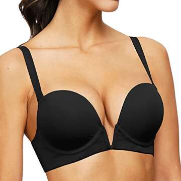 Show more Experience the ultimate blend of comfort, style, and support with the Upushall Women's Deep Plunge V Bra. Designed for the modern woman who values versatility in her lingerie collection, this innovative bra features a deep plunge design that enhances your natural curves, making it ideal for low-cut outfits and formal occasions alike. Crafted from high-quality materials, the soft padded cups provide excellent lift while ensuring a luxurious feel against your skin.