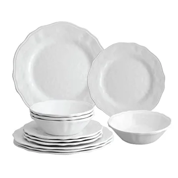 Show moreIntroducing the UPware 12-Piece Melamine Dinnerware Set, your perfect companion for stylish dining, whether indoors or out! Crafted from high-quality, BPA-free melamine, this elegant set includes dinner plates, salad plates, and bowls, ideal for a variety of meals. Its sophisticated, sleek white color with wavy edges elevates any table setting, adding a touch of elegance and sophistication. Lightweight and durable, this dinnerware is designed to withstand the rigors of everyday use, while also being a beautiful addition to your decor. Forget about the hassle of heavy dishes; these are easy to store and clean, making your dining experience as enjoyable as the meal itself!