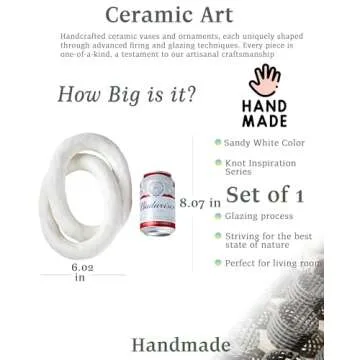 Show more Introducing the UPWOIGH White Knot Inspired Ceramic Vase, a harmonious blend of minimalist charm and chic knot aesthetics that elevate your home décor. Measuring at 8.07x6.02x1.5 inches, this distinctive vase is not just a decorative item; it’s a work of art that speaks to your refined taste.