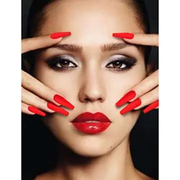 Show more Step into a world of style and elegance with the Uranian Coffin Extra Long Press on Nails. Crafted with care, these red fake nails are made from high-quality acrylic that is non-toxic, ensuring that your hands remain safe and free from harmful substances. With a chic matte finish, these nails redefine sophistication and set the perfect tone for any occasion, whether it be a glamorous Halloween celebration or a cozy Christmas gathering.