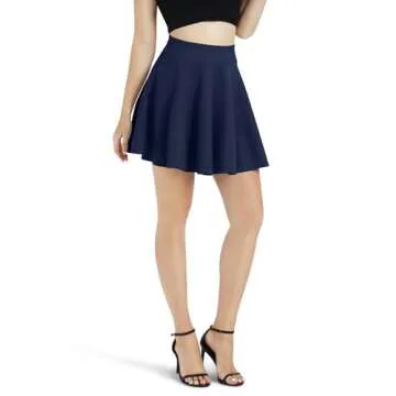 Urban CoCo Women's Basic Versatile Stretchy Flared Casual Mini Skater Skirt (Large, Navy Blue)