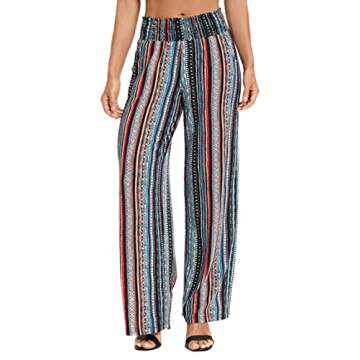 Urban CoCo Women's Boho Palazzo Pants Wide Leg Beach Pants High Waisted Lounge Pants with Pockets(S, 14)