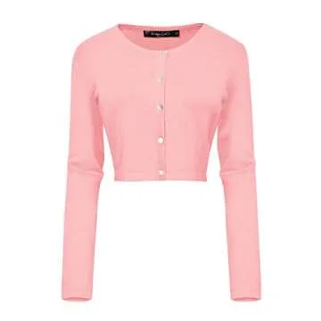 Show moreIntroducing the Urban CoCo Women's Button Down Crew Neck Cropped Cardigan Lightweight Shrug Knit Sweater in a delightful pink hue, a versatile and chic addition to your wardrobe. Crafted from a combination of stretchy and soft lightweight fabric, this cardigan provides a smooth texture that feels wonderful against your skin. Its stylish design includes a crew neck, long sleeves, and a practical 5-button down front, allowing for easy styling and layering. Perfectly designed for any season, this cardigan can be paired beautifully with camisoles or sleeveless dresses, making it a fantastic choice for both casual outings and more formal occasions. With a focus on comfort and style, it's truly a wardrobe essential that you won't want to miss.