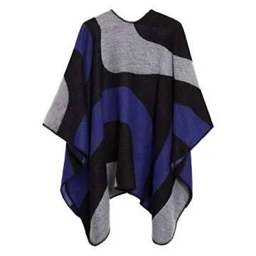 Urban CoCo Women's Color Block Shawl Wrap Open Front Poncho Cape (Series 19-Royal Blue)