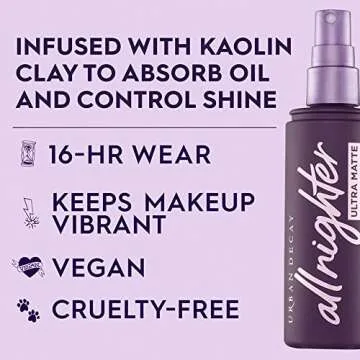 Urban Decay All Nighter Ultra Matte Setting Spray - Makeup Finishing Spray - Lasts Up To 16 Hours - Oil & Shine-Controlling Mist - Great for Oily Skin - 1.0 fl. oz