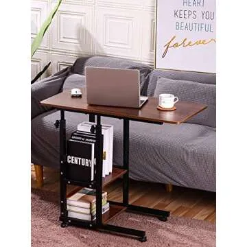 Urban Deco Home Office Desk with Drawer Standing Desk Adjustable Height, Moveable Computer Stand with 4 Wheels & Plastic Drawers Corner Desks for Home Office - Retro Brown